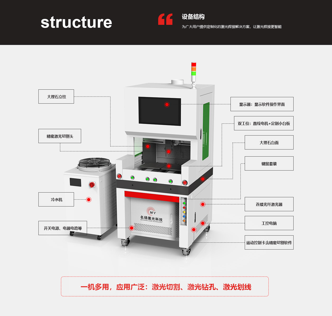 ? 雙工位焊接,臺板設有治具安裝孔,效率高。