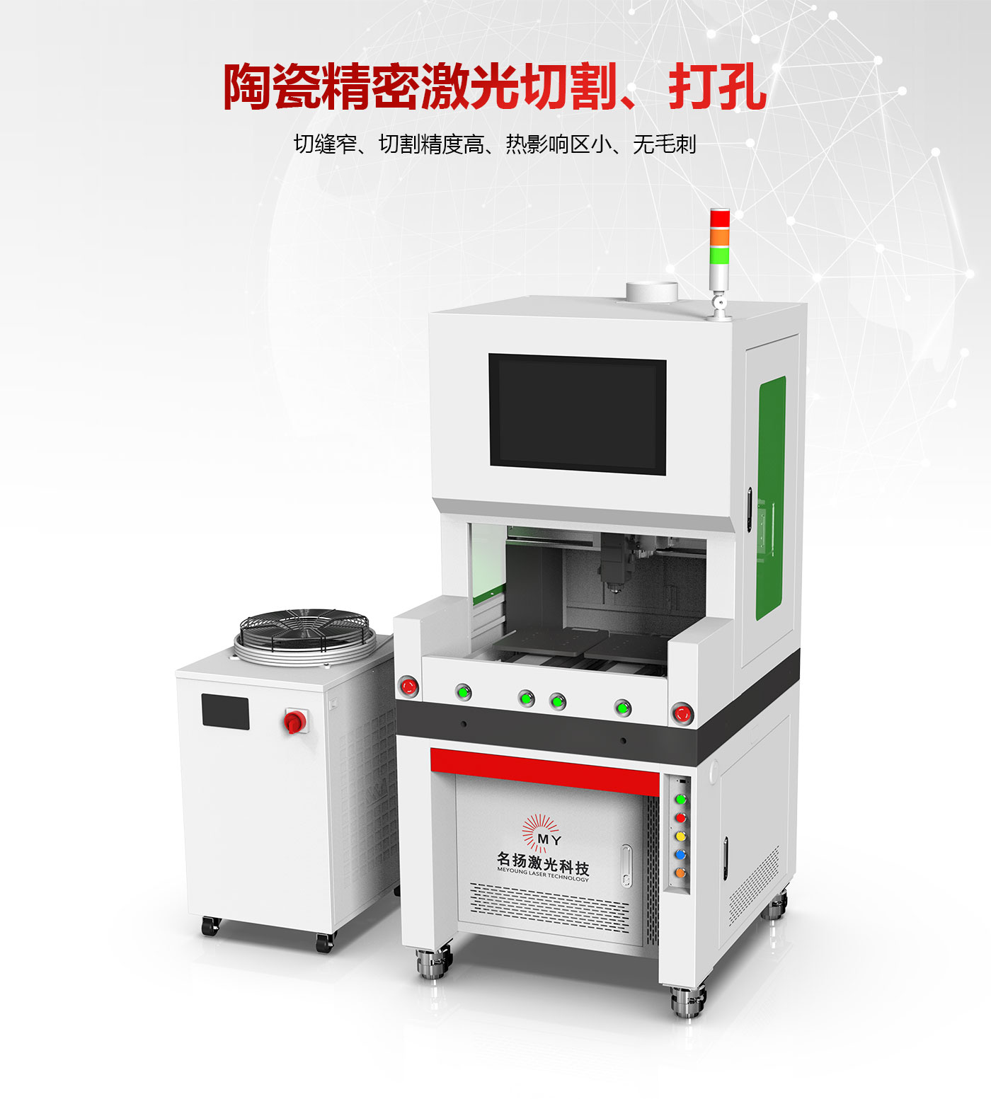 ? 采用高品質準直切割頭,切割效果精良,加裝同軸吹氣系統。
