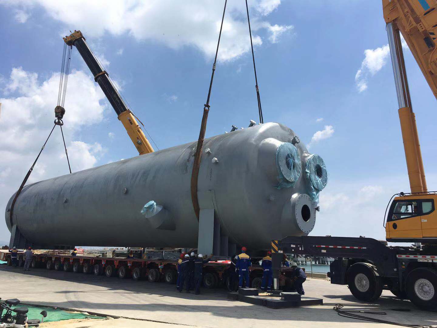 博納科技負責承建其中的15萬噸/年SAR裝置再生爐系統,該爐型是博納科技自主研發的廢酸再生專用特種爐,直徑接近7米,長度30多米,凈重達140余噸,屬于超高超寬難運輸的設備。